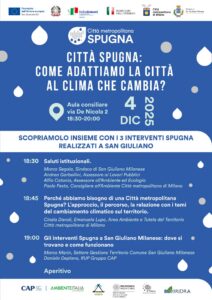 L’obiettivo è assorbire e immagazzinare l’acqua piovana localmente, invece di incanalarla e drenarla in fognatura. Questo comporta un vantaggio ecofunzionale di riconversione del territorio in senso climatico, ambientale e idraulico oltre che sociale, naturalistico e economico. Con Spugna, la Città metropolitana mette a sistema tutti gli strumenti a sua disposizione con l’obiettivo di diminuire la vulnerabilità dei sistemi naturali e socio-economici e di rafforzare la capacità di resilienza del territorio, soprattutto per i territori caratterizzati da elevati livelli di impermeabilizzazione e alta densità urbanistica. Sono stati individuati 90 interventi in 32 Comuni.