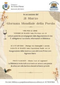 In occasione della Giornata Mondiale della Poesia (21 marzo), la Biblioteca organizza diverse iniziative, tra cui: