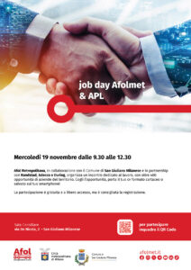 Il Comune di San Giuliano Milanese e AFOL Metropolitana organizzano – in partnership con Randstad, Adecco e During – un incontro dedicato al lavoro, con oltre 400 opportunità di aziende del territorio.