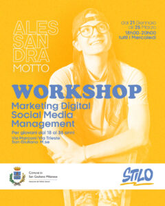 A Spazio Stilo è in partenza un Corso di Marketing Digital e Social Media Management, che si terrà dal 21 gennaio al 25 marzo, ogni mercoledì dalle 18 alle 20. Per iscriverti compila il form: https://forms.gle/FgShcjQU7SWw7NTA9
