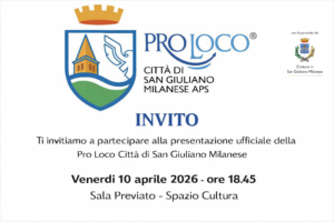 Venerdì 10 aprile, alle ore 18.45 presso la Sala Previato a SpazioCultura, si terrà la presentazione ufficiale della PRO LOCO Città di San Giuliano Milanese APS.